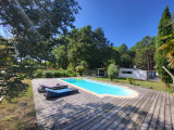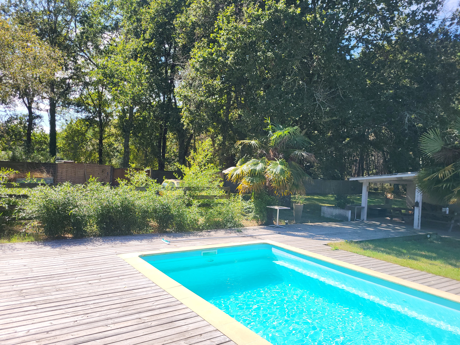 À VENDRE , MAISON de construction "traditionnelle", à rafraîchir intérieurement, fonctionnelle et offrant de jolis volumes, composée de 5 pièces principales, de plain-pied et agencée comme suit : SÉJOUR/SALON avec poêle à bois, CUISINE/COIN REPAS avec cheminée « insert », COULOIRS DE DÉGAGEMENT dont 1 avec emplacement placards, 4 CHAMBRES dont 1 avec placards, 2 SALLES D’EAU avec W.C. (= dont 1 sanibroyeur) et 1 avec placards, DRESSING, CELLIER, BUANDERIE avec accès extérieur + Atelier attenant de 50 m² environ, compartimenté en 4 pièces + 1 abri couvert + Terrasse couverte attenante, Piscine « coque » enterrée, 8 x 5, au chlore, avec pompe à chaleur, Local technique et sa plage en bois, donnant sur une superbe parcelle de terrain clôturée de 14.624 M², classée en zone « N » (= Zone Naturelle et Forestière). Situation très attractive : Dans un environnement calme et boisé, à 2 km du Bourg de Brach et à moins de 15 km de Carcans, Lacanau et Sainte-Hélène…