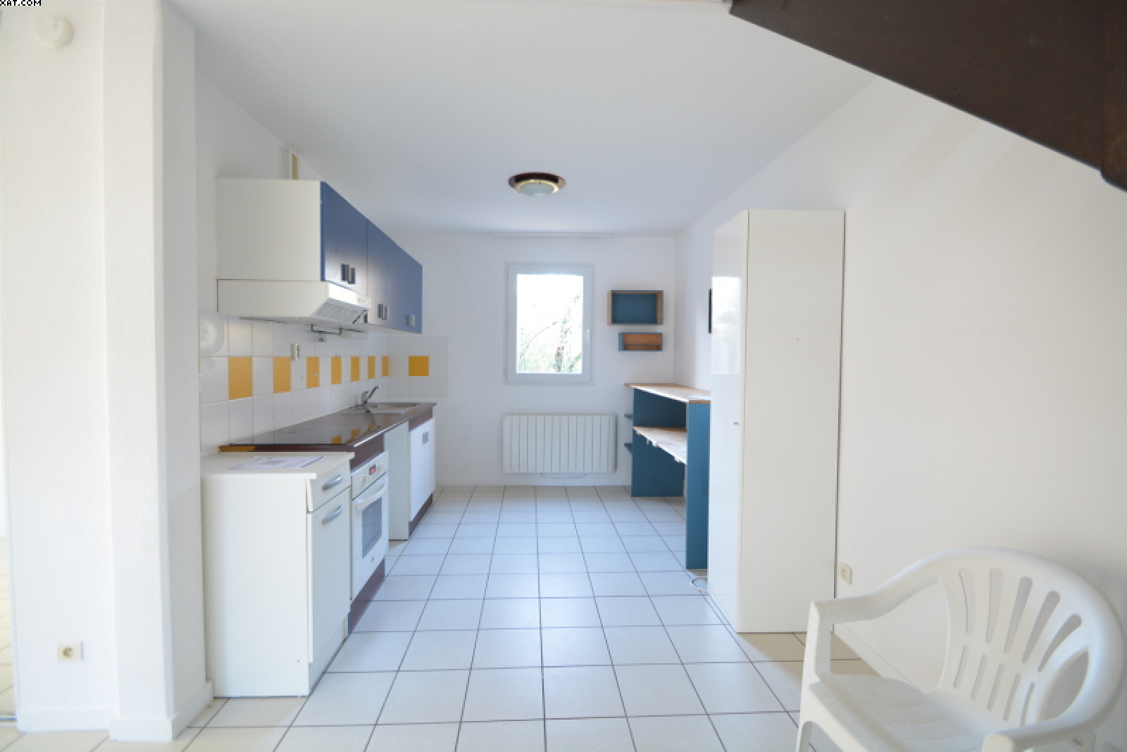 À LOUER, MAISON bois de 59,62 m², en bon état général, composée de 3 pièces principales, mitoyenne par le cellier et élevée d'un étage, agencée comme suit : Rez-de-chaussée : SÉJOUR/SALON ouvrant sur terrasse couverte, CUISINE "américaine" aménagée, DÉGAGEMENT, SALLE DE BAINS, W.C. indépendant. Étage: DÉGAGEMENT, MEZZANINE, 2 CHAMBRES dont 1 avec placards et 1 avec emplacement placards, 1 BUREAU avec emplacement placards, SALLE D'EAU + Cellier attenant de 5,04 m². Situation attractive : dans une Domaine privé en copropriété avec hameau des sports (= tennis et piscine, port privé), piscine commune dans le Hameau, à proximité du Lac et des pistes cyclables menant à l'Océan, à quelques minutes des commodités de Lacanau-Ville, secteur calme et boisé… BAIL EN VIDE LIBRE AU 23 JUILLET 2025... Loyer = 850 € par mois Hors Charges + 50 € de Charges (= Provisions pour eau + copro + TEOM)... Dépôt de garantie = 850 €... Honoraires d’Agence à la charge du Locataire = 596,20 € TTC (Dont États des Lieux = 178,86 € TTC). Merci de demander un dossier de candidature à l’Agence.