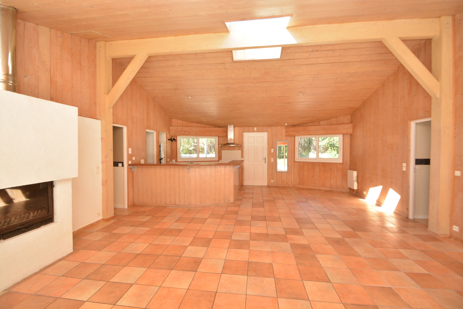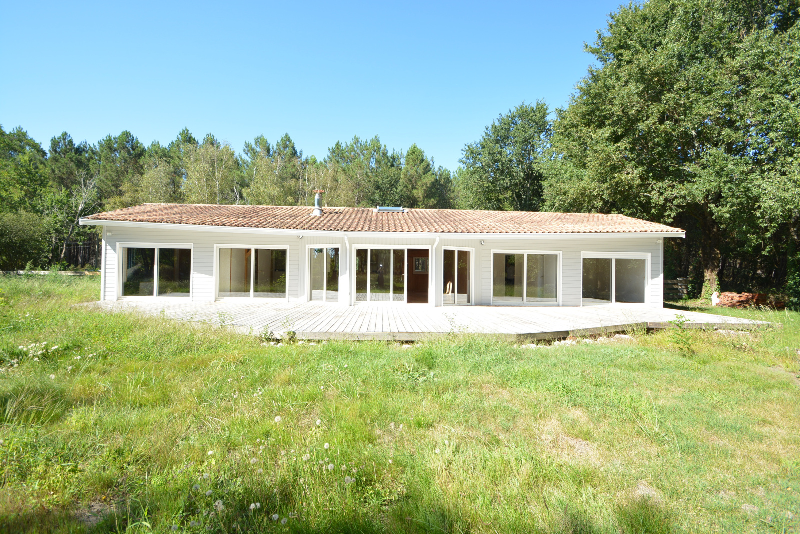 À VENDRE, Jolie MAISON bois lumineuse et à l'agencement optimisé, composée de 6 pièces principales, de plain-pied et agencée comme suit : SÉJOUR/SALON avec cheminée « insert », CUISINE « américaine » aménagée, CELLIER avec accès extérieur, COULOIR DE DÉGAGEMENT .1., SUITE PARENTALE avec placards donnant sur terrasse bois + SALLE D’EAU privative, BUREAU avec rochelle, donnant sur terrasse bois, W.C. indépendant .1., COULOIR DE DÉGAGEMENT .2., 3 CHAMBRES avec placards, donnant sur l’extérieur, SALLE DE BAINS avec placards, W.C. indépendant .2. + TERRASSE bois attenante, donnant sur une superbe parcelle de terrain boisée et en partie clôturée de 4.230 m². Emplacement privilégié, en plein cœur de la nature à 3 kms du Bourg et de ses commodités, dans un environnement calme et boisé, sans vis-à-vis direct, entre OCÉAN et SAINT-MÉDARD-EN-JALLES, MÉRIGNAC, près BASSIN D’ARCACHON, LACANAU…