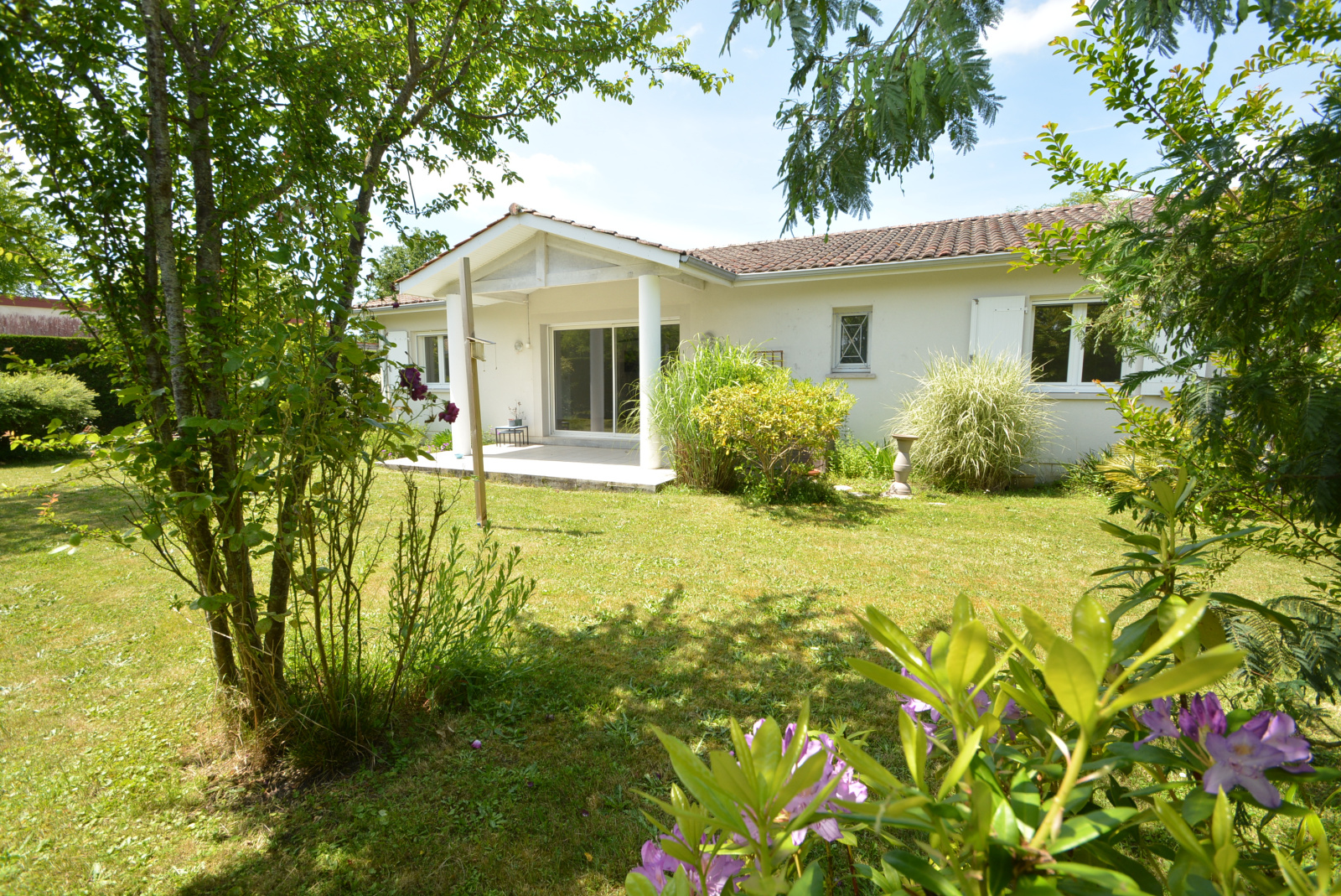 À VENDRE , Jolie MAISON de construction "traditionnelle", lumineuse et fonctionnelle, saine et habitable de suite, composée de 4 pièces principales, de plain-pied et agencée comme suit : ENTRÉE avec placards, SÉJOUR/SALON donnant sur terrasse couverte, CUISINE ouverte aménagée, COULOIR DE DÉGAGEMENT, 3 CHAMBRES avec placards, SALLE DE BAINS, W.C. indépendant + Garage attenant, Terrasse arrière couverte et carrelée, Porche d’entrée couvert, donnant sur une parcelle de terrain entièrement clôturée de 1.000 m² environ. Situation attractive : En périphérie du Bourg et de ses commodités, sans vis-à-vis direct, Proche, des Écoles, maternelle et primaire, avec ramassages scolaires pour Collège et Lycée + crèche associative dans le village… Près de piste cyclable… de l’Océan, du Bassin d’Arcachon et du Lac de Lacanau…