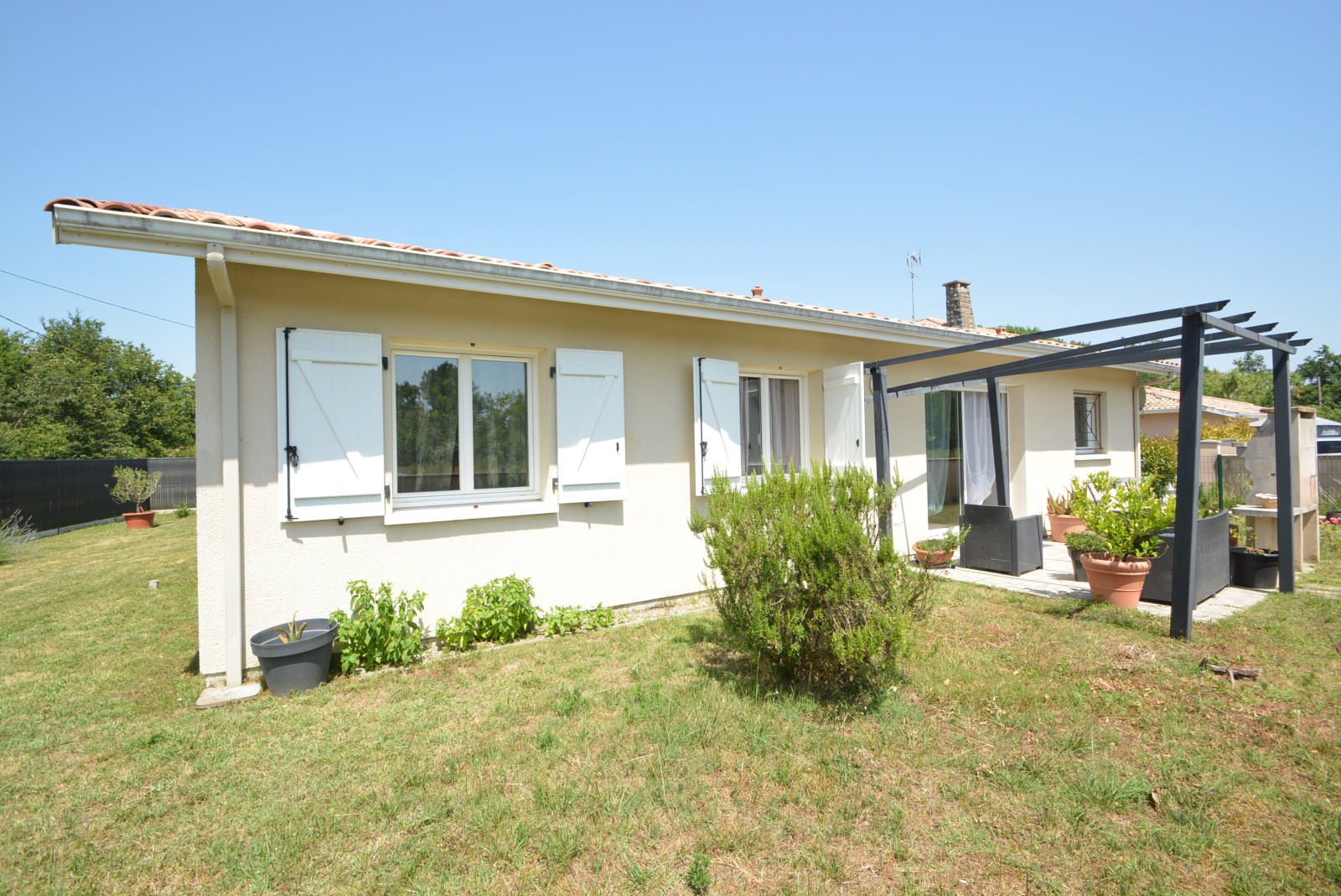 À VENDRE, MAISON de construction « traditionnelle », en bon état général, lumineuse et à l'agencement optimisé, composée de 4 pièces principales, de plain-pied et agencée comme suit : SÉJOUR/SALON donnant sur terrasse arrière carrelée, CUISINE « américaine » aménagée, DÉGAGEMENT, 3 CHAMBRES avec placards, SALLE D’EAU, W.C. indépendant avec fenêtre + Garage attenant, Terrasse arrière carrelée et Porche d’entrée couvert, de plain-pied sur une parcelle de terrain clôturée de 600 m² environ. Situation très attractive : En périphérie immédiate du Bourg et de ses commodités… Proche, des Écoles, maternelle et primaire, avec ramassages scolaires pour Collège et Lycée + crèche associative dans le village… Près de piste cyclable… de l’Océan, du Bassin d’Arcachon et du Lac de Lacanau…